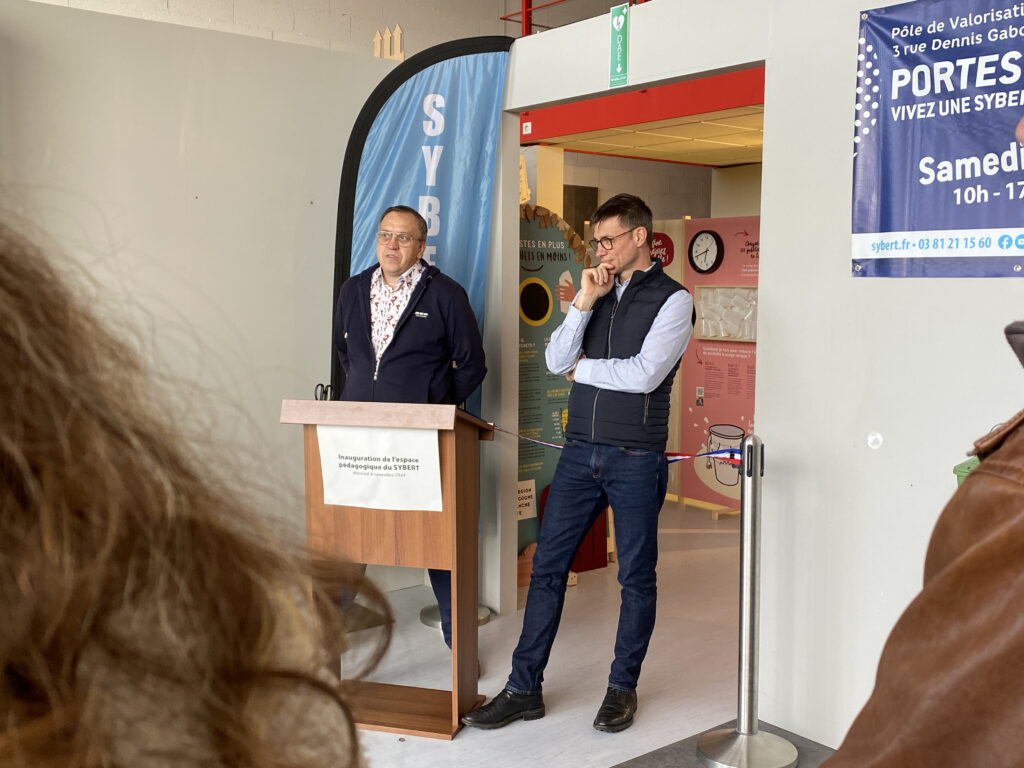 Le tout nouvel espace pédagogique du SYBERT, entièrement dédié à la promotion de l’économie circulaire et à la prévention des déchets, a été officiellement inauguré mercredi 6 novembre 2024 par Cyril Devesa, Président du SYBERT et Olivier Legain, Vice-Président du SYBERT en charge de la Prévention des déchets, en présence des adhérents du SYBERT, de la Région Bourgogne-Franche-Comté et la presse locale.